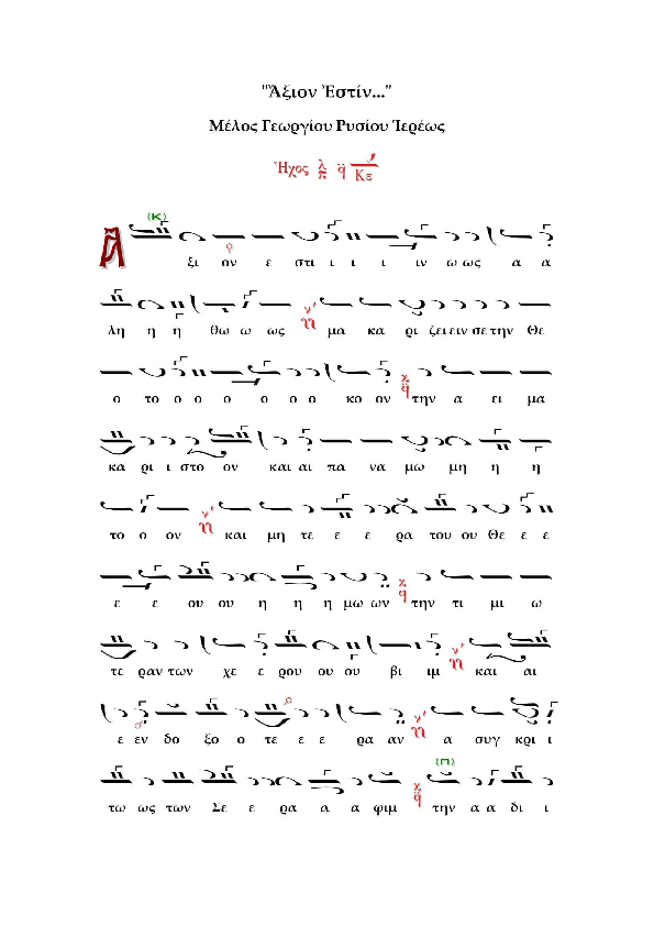α στην Ιερά Μονή Μεταμορφώσεως του Σωτήρος στο. πληκτρολόγηση με πρόγραμμα ΒΥζαντινής Μουσικής. Επισυνάπτω το Άξιον Εστίν του Μιχ.